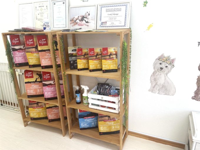 中に入ると、ドッグフードの商品棚があります☆彡